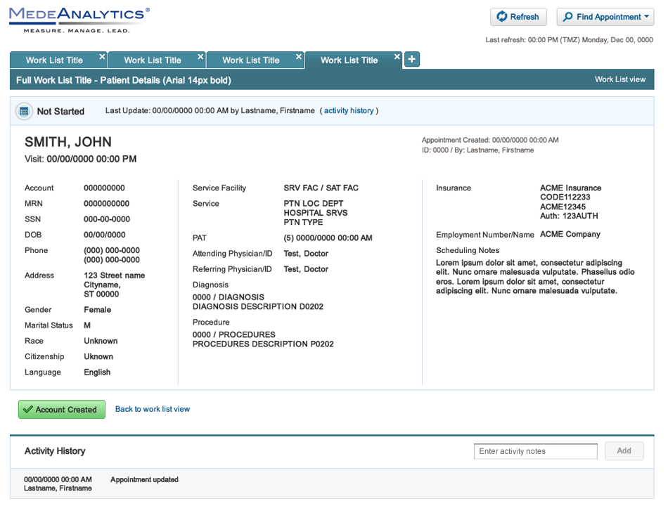 - Patient Access Intelligence (PAI) SaaS with HL7 integration.