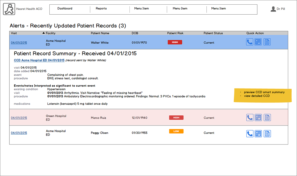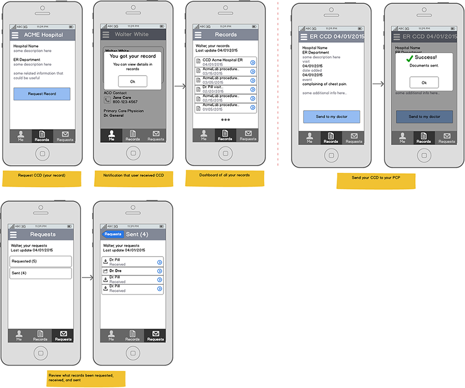 Hearst Health Innovation Lab - Continuity of Care (CCD) concept with provider web interface and patient mobile apps.